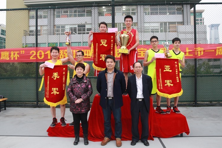 3 月4日下午,“寶鷹杯”2014辭舊迎新暨慶祝寶鷹股份上市一周年籃球賽總決賽于深圳車公廟OWIN球場(chǎng)舉行。寶鷹集團(tuán)董事長(zhǎng)古少波、工會(huì)主席溫武艷、監(jiān)事會(huì)主席胡蘭萍等領(lǐng)導(dǎo)蒞臨決賽現(xiàn)場(chǎng)并為獲獎(jiǎng)球隊(duì)頒獎(jiǎng)。