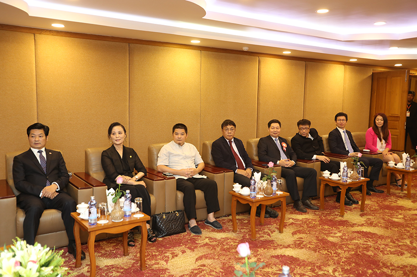論壇期間,在緬甸投資發(fā)展協(xié)會(huì)主席、緬甸KMA集團(tuán)主席欽茂皚的陪同下,緬甸副總統(tǒng)吳敏瑞在緬甸皇家內(nèi)比都酒店親切會(huì)見了受邀參加論壇的中資企業(yè)代表寶鷹集團(tuán)董事局主席古少明一行。
