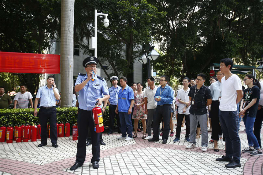 ▲天安派出所申建華警官講解了滅火器使用技巧和消防知識