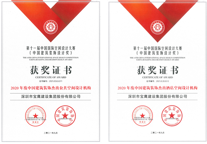 日前,第十一屆中國國際空間設(shè)計(jì)大賽在深圳落下帷幕,通過組委會(huì)專家的層層嚴(yán)格篩選與評(píng)審,寶鷹集團(tuán)憑借強(qiáng)大的設(shè)計(jì)綜合實(shí)力獲評(píng)“2020年度中國建筑裝飾杰出公共空間設(shè)計(jì)機(jī)構(gòu)”和“2020年度中國建筑裝飾杰出酒店空間設(shè)計(jì)機(jī)構(gòu)”,寶鷹設(shè)計(jì)研究院設(shè)計(jì)作品獲二金二銀二銅。