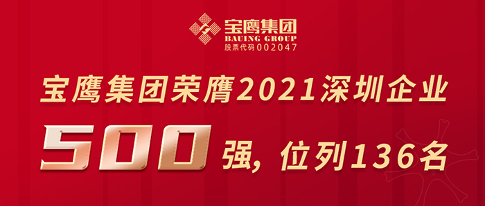 日前,2021深圳500強企業(yè)榜單發(fā)布。憑借出色的企業(yè)實力,寶鷹集團榮幸入榜,位列榜單第136位。