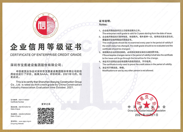 多年來,寶鷹集團始終秉承“誠信為人、嚴謹做事、共同發(fā)展”的經(jīng)營理念,倡導企業(yè)誠信文化,弘揚誠信傳統(tǒng)美德,樹立法律意識、責任意識,強化企業(yè)內(nèi)部誠信管理,連續(xù)獲得中國守合同重信用企業(yè)、中國優(yōu)秀誠信企業(yè)、中國建筑業(yè)AAA級信用等級企業(yè)、中國建筑裝飾協(xié)會AAA級信用等級企業(yè)、廣東省最佳誠信企業(yè)、廣東省守合同重信用企業(yè)等榮譽。