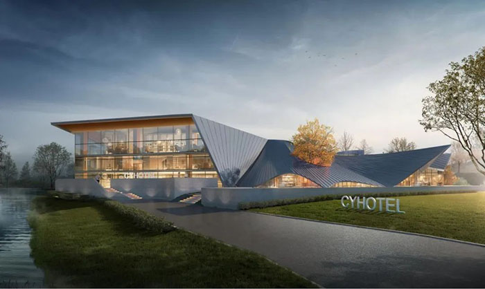 項目不同于以往規(guī)矩的建筑設計,將黃山楓葉融入設計中,形態(tài)回應如鳳,與黃山相望,由自然而來。揭開朝陽村“詩意民宿村”的未來畫卷。建筑似從地面生長蔓延而出,宛如起伏的山體的延續(xù)。將建筑融入到環(huán)境中,綿延了城市的風光,消解了硬性的界面形式,能從各個角落望見窗外的風景,盡最大可能地與自然進行對話。
