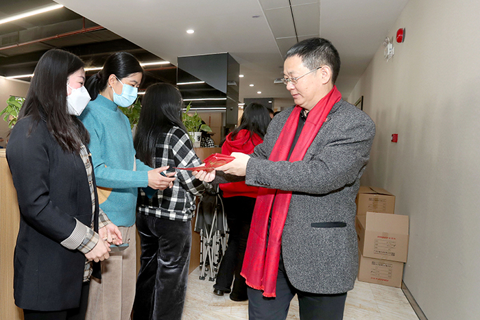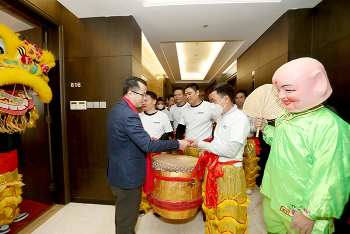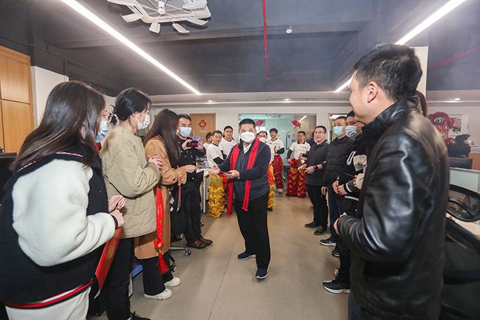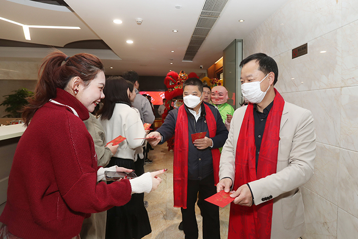 9點(diǎn)18分,伴隨著震耳的鞭炮聲和歡快的寶鷹醒獅隊(duì)鑼鼓聲,寶鷹股份副董事長(zhǎng)兼總經(jīng)理古少波,寶鷹股份常務(wù)副總經(jīng)理、寶鷹建設(shè)董事長(zhǎng)薛依東攜公司高管團(tuán)隊(duì)向總部全體員工拜年,派發(fā)開工利是。懷著對(duì)未來的美好憧憬與期待,全體寶鷹人必將凝聚“一家人一條心一起干”的磅薄力量,擺出“開局就開戰(zhàn)、起步就起跑”的姿態(tài),同心同行啟航新征程。