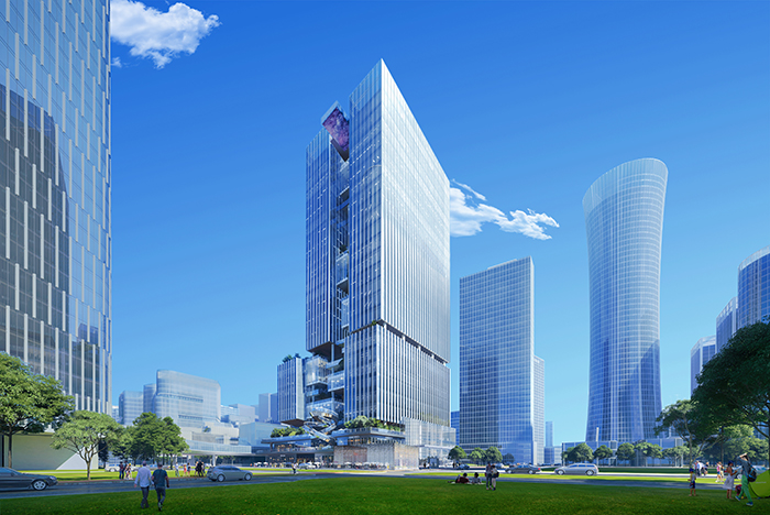 深圳建工·寶鷹總部大樓由Aedas凱達(dá)環(huán)球建筑設(shè)計(jì)事務(wù)所設(shè)計(jì),在這個(gè)總部林立的地塊,以“綠谷之門”為概念,打造一座兼?zhèn)渚G色親人空間與社交互動(dòng)的地標(biāo)性辦公社區(qū)。項(xiàng)目建設(shè)完成后,將成為深圳建工與寶鷹股份的戰(zhàn)略據(jù)點(diǎn),不僅有利于改善公司整體運(yùn)營(yíng)環(huán)境,滿足現(xiàn)代化、信息化、數(shù)字化運(yùn)營(yíng)管理的需要,同時(shí)有助于進(jìn)一步提升公司綜合管理能力和整體形象,更好地吸引高端人才加入,增強(qiáng)公司的市場(chǎng)競(jìng)爭(zhēng)實(shí)力和持續(xù)盈利能力。從而為兩家單位扎根深圳灣總部基地,實(shí)現(xiàn)穩(wěn)健可持續(xù)發(fā)展,服務(wù)南山城市建設(shè)提供有力保障。