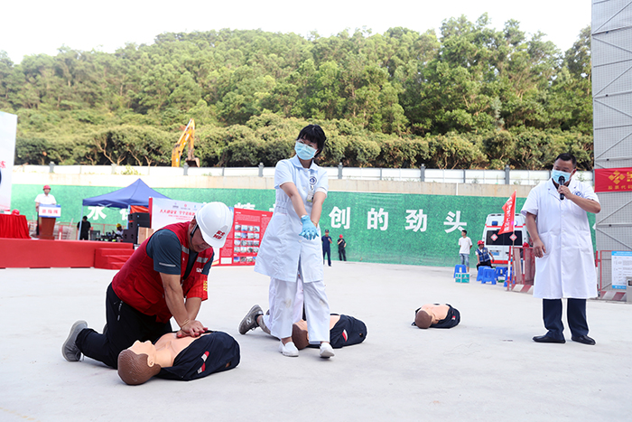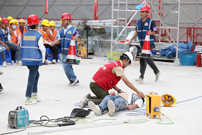 演練模擬汛期來(lái)臨、機(jī)械傷害、高處墜落、觸電傷害、火災(zāi)等建筑工地現(xiàn)場(chǎng)常見(jiàn)的五種事故場(chǎng)景,充分考驗(yàn)項(xiàng)目管理團(tuán)隊(duì)面對(duì)緊急事故的應(yīng)急救援能力。事故發(fā)生后,項(xiàng)目安全通訊組、搶險(xiǎn)救災(zāi)組、醫(yī)療救護(hù)組、疏散警戒組、后勤保障組第一時(shí)間有序科學(xué)地開(kāi)展應(yīng)急救援各項(xiàng)工作,隨后專業(yè)醫(yī)護(hù)人員、消防官兵現(xiàn)場(chǎng)進(jìn)行專業(yè)知識(shí)培訓(xùn)講解。各小組積極配合、迅速反應(yīng)、及時(shí)報(bào)告、有序組織,演練達(dá)到預(yù)期效果,取得圓滿成功。