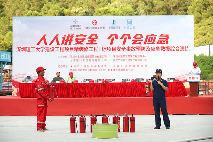 6月21日,由深圳市寶鷹建設(shè)集團(tuán)股份有限公司、深圳市建筑工務(wù)署工程管理中心、上海建科工程咨詢有限公司、中建二局第三建筑工程有限公司聯(lián)合主辦,深圳市光明區(qū)新湖街道辦、光明區(qū)消防救援大隊(duì)、中國(guó)科學(xué)院大學(xué)深圳醫(yī)院(光明)圳美社區(qū)健康服務(wù)中心協(xié)辦的2023年安全生產(chǎn)月”安全事故預(yù)防及應(yīng)急救援綜合演練在深圳理工大學(xué)建設(shè)工程項(xiàng)目舉行