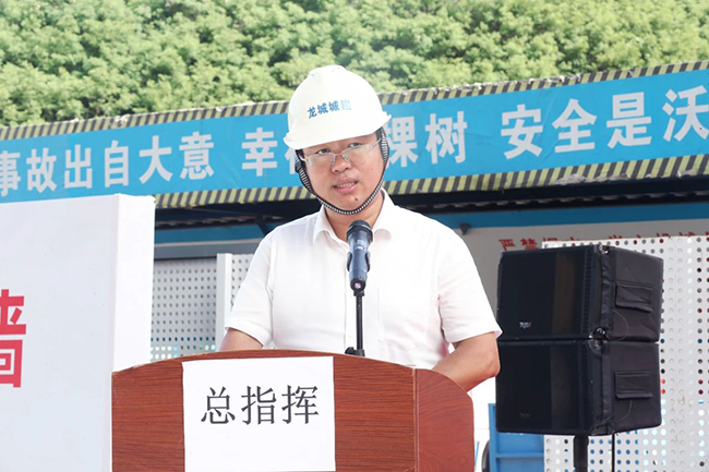 寶鷹建設(shè)集團(tuán)董事長肖家河宣布演練開始