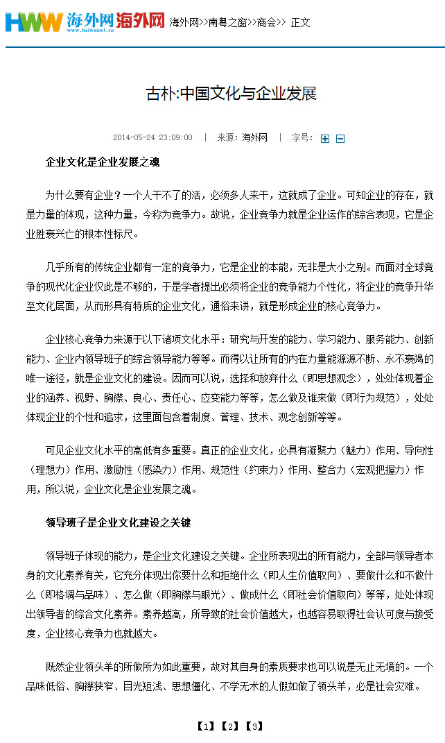 近日,人民日報(bào)刊發(fā)副總裁古樸文章《中國文化與企業(yè)發(fā)展》,論述文化與企業(yè)的關(guān)聯(lián)性?,F(xiàn)將全發(fā)刊發(fā)如下,并附原文地址。