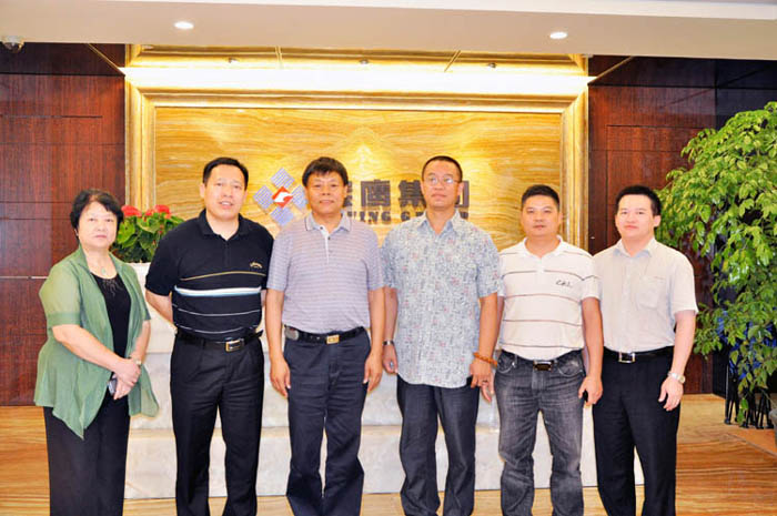 陳新秘書長(zhǎng)(左三)、劉原總工程師(右三)與常務(wù)副總裁許平(左二)、副總裁古樸(右二)、監(jiān)事會(huì)主席胡蘭萍(左一)合影留念