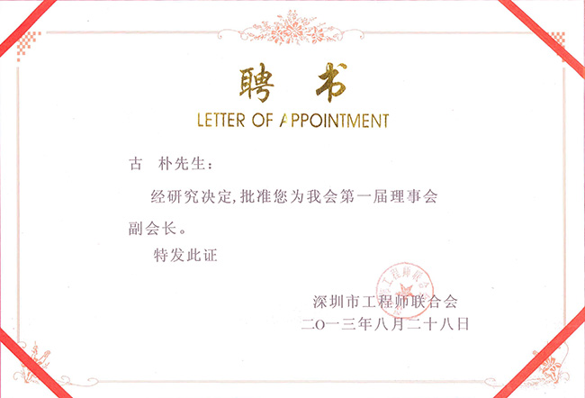 集團副總裁古樸榮聘為深圳市工程師聯(lián)合會第一屆理事會副會長