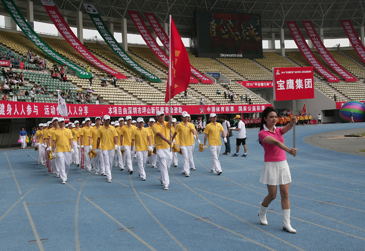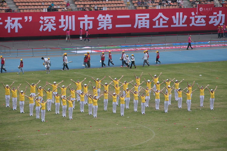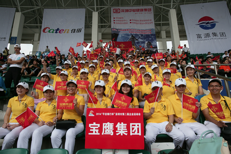 深圳企業(yè)運(yùn)動(dòng)會(huì)是由深圳市企業(yè)聯(lián)合會(huì)、深圳市企業(yè)家協(xié)會(huì)、《時(shí)代商家》雜志社聯(lián)合主辦的面向所有駐深企業(yè)的體育競(jìng)賽盛會(huì)。本屆運(yùn)動(dòng)會(huì)的主題是“大家動(dòng)起來,企業(yè)更精彩?!边\(yùn)動(dòng)會(huì)共設(shè)置比賽項(xiàng)目29項(xiàng),開幕式當(dāng)日設(shè)置了廣播體操等集體項(xiàng)目、男子100米等田徑項(xiàng)目和運(yùn)轉(zhuǎn)乾坤等趣味比賽項(xiàng)目。寶鷹集團(tuán)的運(yùn)動(dòng)健兒們參加了入場(chǎng)方陣、廣播體操和運(yùn)轉(zhuǎn)乾坤三個(gè)項(xiàng)目。