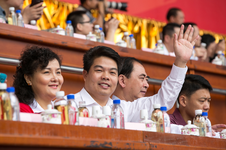 寶鷹集團(tuán)古少波董事長(zhǎng)在主席臺(tái)向運(yùn)動(dòng)健兒揮手示意