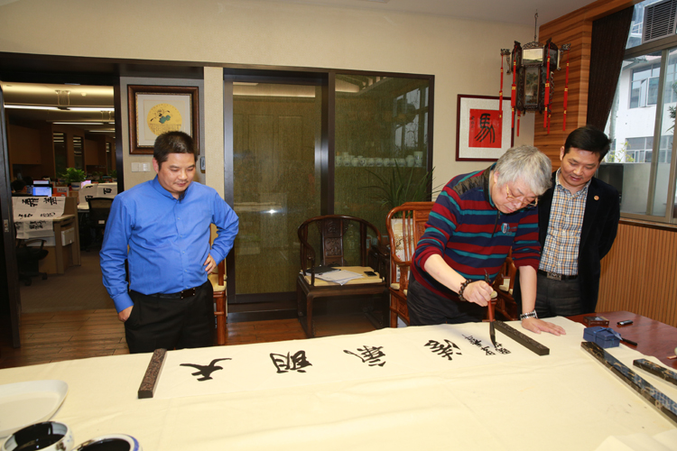 周國城主席以前已多次訪問寶鷹集團(tuán),對寶鷹集團(tuán)的發(fā)展寄予厚望。此次前來,周國城主席和古樸副總裁暢論書畫之道,并談及企業(yè)文化建設(shè)的方方面面,在贊揚(yáng)寶鷹集團(tuán)現(xiàn)在輝煌企業(yè)文化建設(shè)的同時,鼓勵寶鷹集團(tuán)要在“藝術(shù)寶鷹、文化寶鷹”的道路上堅持走下去,走出更美好的未來。