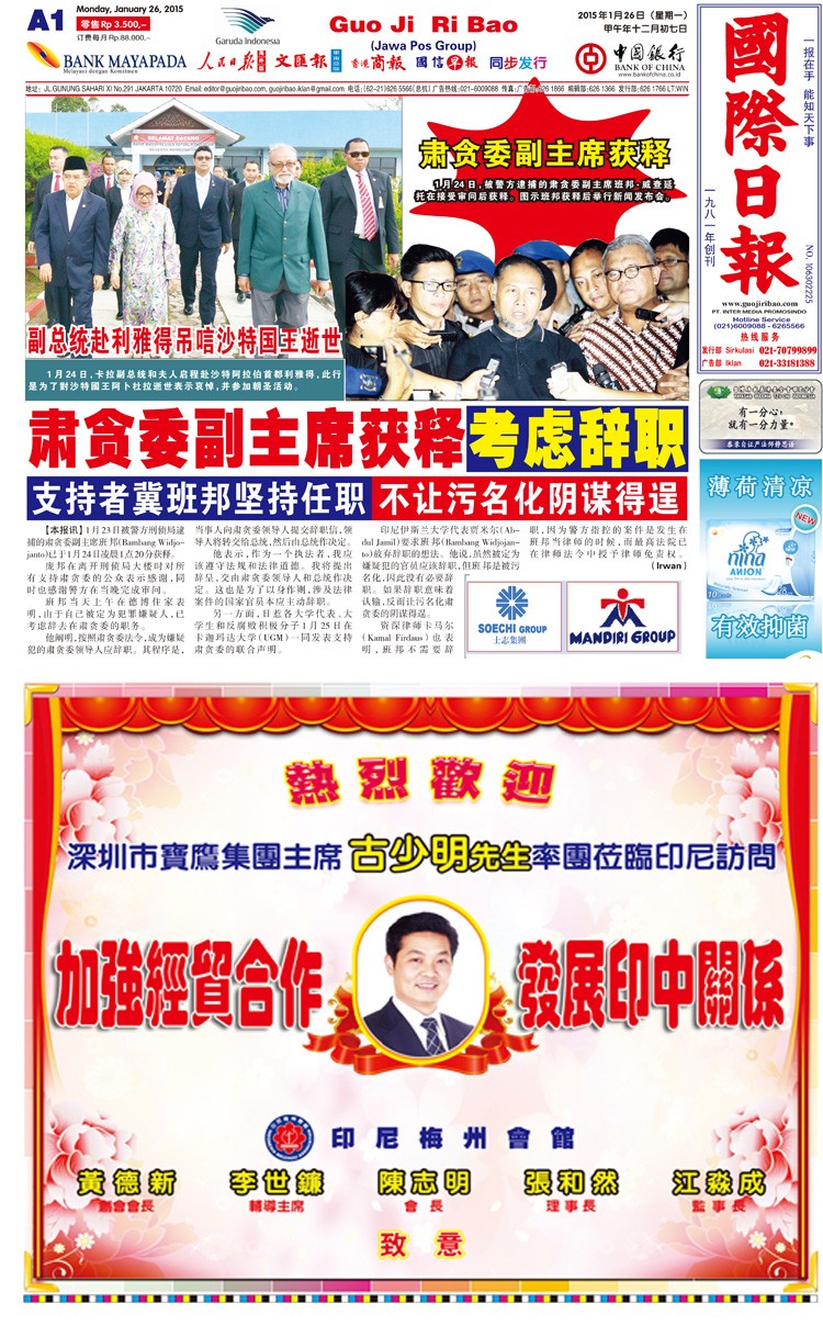 印尼梅州會館在《國際日報》刊圖歡迎古少明主席一行訪問印尼
