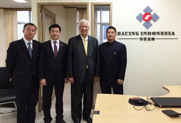 印尼熊氏集團(tuán)董事長熊德龍(左三)、寶鷹集團(tuán)董事局主席古少明(左二)、副總裁古樸(右一)和印尼寶鷹總經(jīng)理陶武銘(左一)在印尼寶鷹辦公室