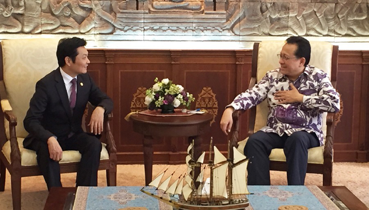 古少明主席與印尼地方代表理事會主席伊爾曼·古斯曼在印尼國會進(jìn)行會談