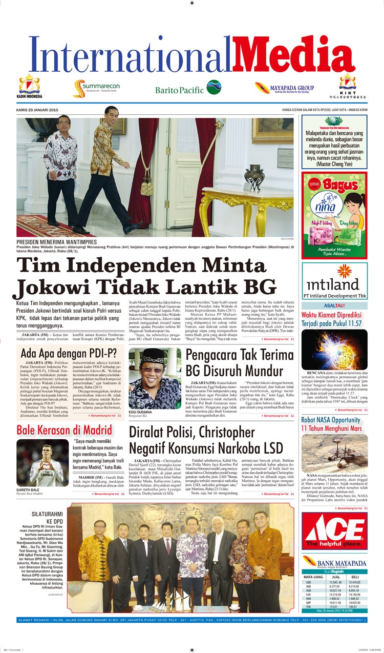 印尼文報紙《International Media》頭版報道古少明主席一行拜訪印尼地方代表理事會主席伊爾曼·古斯曼
