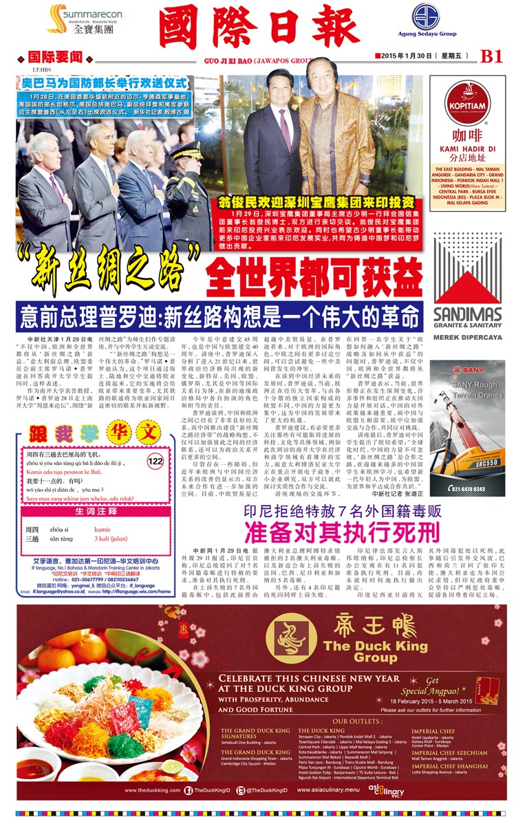 印尼《國際日報》刊載古少明主席一行拜訪國信集團(tuán)董事長翁俊民博士