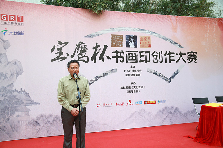 4月16日,由廣東廣播電視臺、深圳市寶鷹建設控股集團股份有限公司主辦,珠江頻道《文化珠江》欄目組和《國際日報》承辦的“寶鷹杯”國際書畫印創(chuàng)作大賽啟動儀式在廣州廣東電視臺中心盛大舉行,寶鷹集團副總裁古樸、總裁助理吳義課、品牌文化宣傳主管高升等領導出席了啟動儀式,副總裁古樸與廣東廣播電視臺副臺長蔡照波一同簽訂了《“寶鷹杯”國際書畫印創(chuàng)造大賽合作協(xié)議》,還在儀式最后發(fā)表了重要致辭。