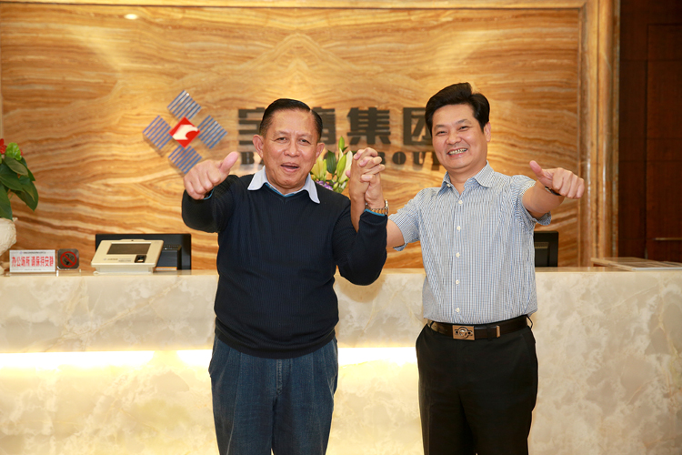 勒邦先生和古少明主席一起為印尼寶鷹在印尼發(fā)展的美好未來點(diǎn)贊