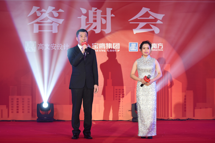 高文安設(shè)計公司設(shè)計總監(jiān)常國令在致辭中表示:高文安設(shè)計融入寶鷹大家庭時間雖短,但卻明顯的感受到了寶鷹大家庭的和諧溫馨。在裝飾行業(yè)發(fā)展舉步維艱的今天,只要我們抱團發(fā)展,就一定能取得更大的勝利。中建南方總經(jīng)理張玨在致辭中說:中建南方于2014年加入寶鷹大家庭,兩年來與寶鷹共同進退,一道見證了偉大的友誼。今天,我們盛邀高朋,再一次和新老朋友聚在一起暢敘友誼,共同憧憬美好未來。