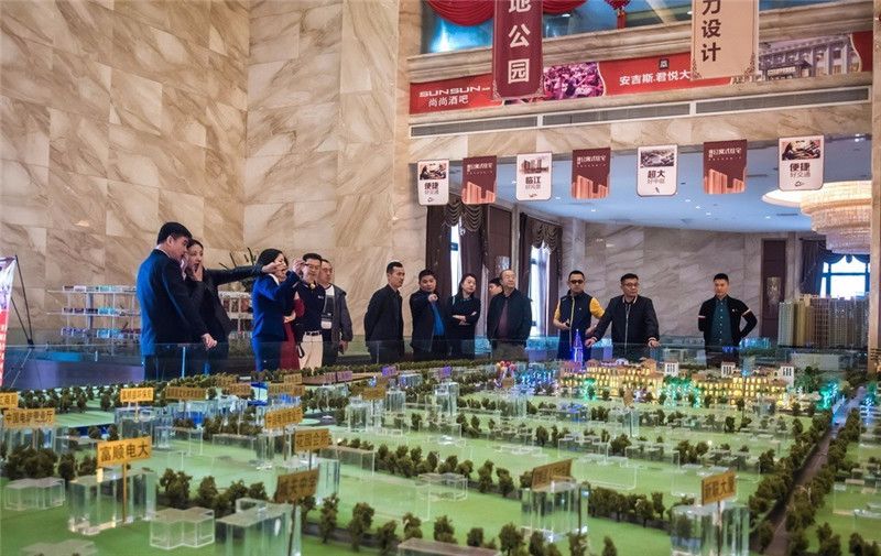 ▲古樸副總裁在項(xiàng)目建設(shè)方的陪同下參觀瑞祥商貿(mào)城售樓中心(右八:古樸副總裁;右七:四川紅瑞祥置業(yè)有限公司總經(jīng)理?xiàng)盍?qiáng)。)