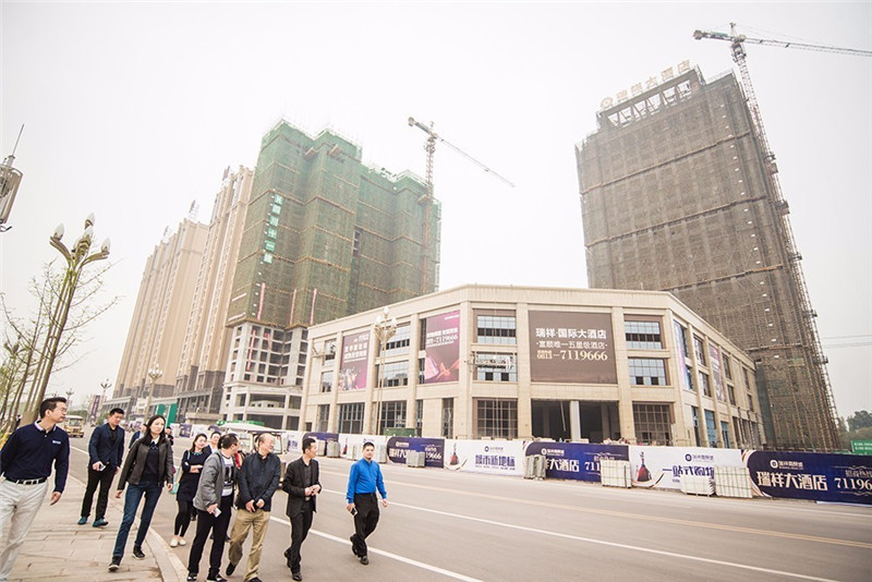 古樸副總裁在考察中首先在四川紅瑞祥置業(yè)有限公司總經(jīng)理?xiàng)盍?qiáng)等領(lǐng)導(dǎo)的陪同下參觀了瑞祥商貿(mào)城售樓中心,詳細(xì)了解了瑞祥商貿(mào)城的建設(shè)概況和瑞祥大酒店的項(xiàng)目情況,并與廣州紅谷集團(tuán)董事長(zhǎng)、四川紅瑞祥置業(yè)有限公司董事長(zhǎng)鄧申偉進(jìn)行了深入座談交流。