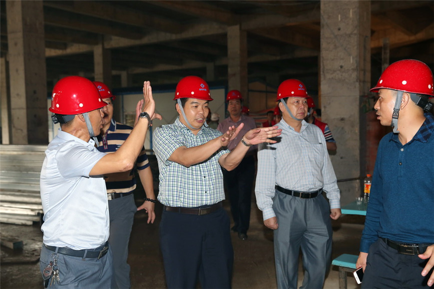隨后,在寶鷹集團項目部工作人員的陪同下,雙方來到施工現(xiàn)場,就工程建設的進度問題仔細核對。在由寶鷹集團負責施工的裙樓展示區(qū)幕墻工程施工現(xiàn)場,古少波董事長及寶鷹集團眾高管就施工工藝、所用材料、項目施工難點等情況向項目部同事一一仔細詢問,并現(xiàn)場檢查安全施工事項,叮囑現(xiàn)場施工人員嚴把安全生產關。