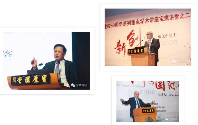 2015—2016年是寶鷹集團(tuán)內(nèi)向型企業(yè)文化建設(shè)向外向型企業(yè)文化建設(shè)的發(fā)展之年。寶鷹集團(tuán)以原本豐富充實的內(nèi)向型企業(yè)文化為根基,將集團(tuán)品牌活動“寶鷹講堂”推向社會,邀請美國華人科技總工會主席、美國哥倫比亞國際大學(xué)校長李大西博士,世界橋梁大師鄧文中院士,倫敦政治經(jīng)濟(jì)學(xué)院的Anderson教授走進(jìn)廣東外語外貿(mào)大學(xué),為千名學(xué)子帶來學(xué)術(shù)盛宴。 2016年,“寶鷹講堂”繼續(xù)牽手廣東外語外貿(mào)大學(xué),相繼邀請了世界著名水產(chǎn)工程學(xué)家、美國國家工程院院士王兆凱走進(jìn)大學(xué)校園開講。