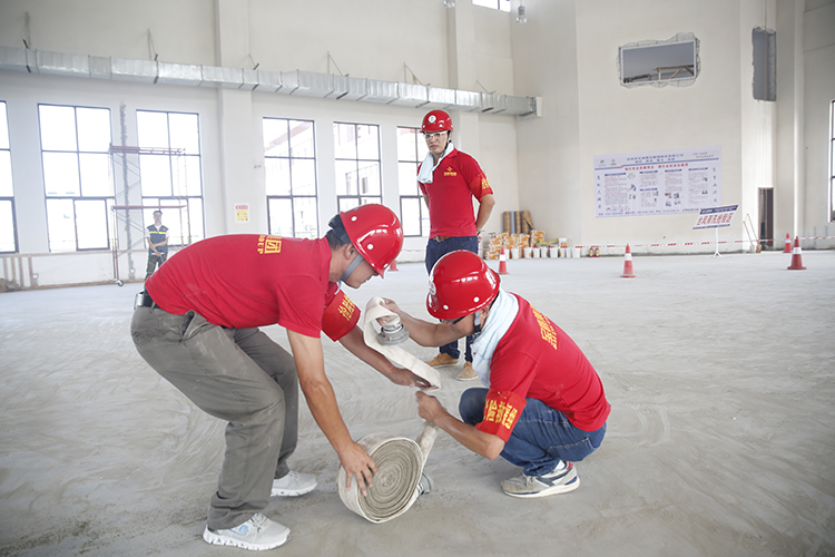 演習(xí)項目分為防臺風(fēng)演習(xí)、防雨汛演習(xí)、消防疏散演習(xí)三個大項,分別模擬了觸電、中暑、火災(zāi)、暴雨臺風(fēng)等工地常見的突發(fā)安全事件和海南當(dāng)?shù)爻0l(fā)的自然氣象災(zāi)害。在觸電事件發(fā)生后,演練人員封鎖事件現(xiàn)場、撥打120急救熱線、按照正確的自救方法對傷員進行救治,迅速報告項目安全人員,同時等待專業(yè)救助人員前來救治。在火災(zāi)發(fā)生后,現(xiàn)場濃煙密布,演練人員迅速自發(fā)分為三隊從安全通道有秩序地撤離現(xiàn)場。暴雨、中暑等演練亦遵循各自的特點,在模擬實戰(zhàn)中為觀摩人員獻上豐富的一課。在滅火演練中,寶鷹集團總裁成湘文上陣為觀摩者示范了消防設(shè)備的使用方法。