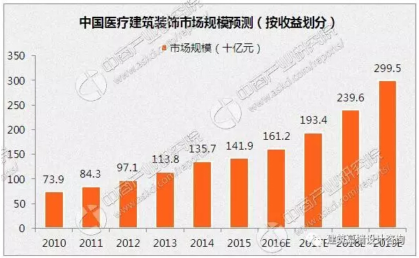 自2010年起,中國醫(yī)療建筑裝飾分部的市場規(guī)模按復(fù)合年增長率13.9%增長,于2015年達(dá)到1,419億元。隨著中國醫(yī)療行業(yè)的快速發(fā)展及人民健康意識增強(qiáng),中國(特別是二三線城市)將建立更多醫(yī)院、社區(qū)診所以及婦幼保健服務(wù)中心等醫(yī)療場所,于2015年,醫(yī)療建筑裝飾行業(yè)占中國整個公共建筑裝飾市場份額為6.1%,且其份額預(yù)期于2019年達(dá)致7.1%。