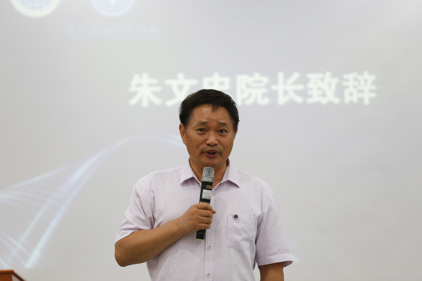 ▲ 廣東外語外貿(mào)大學(xué)商學(xué)院院長朱文忠表示希望企業(yè)能夠把實戰(zhàn)經(jīng)驗帶到培訓(xùn)課程中