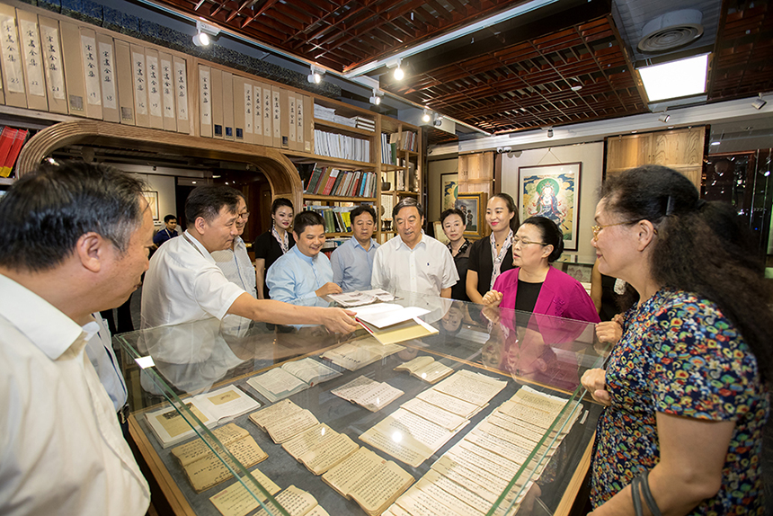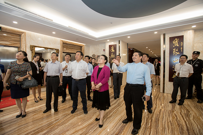 ▲全國政協(xié)科教文衛(wèi)體委員會(huì)副主任、中國經(jīng)濟(jì)社會(huì)理事會(huì)副主席張秋儉一行參觀寶鷹集團(tuán)辦公環(huán)境及寶鷹美術(shù)館