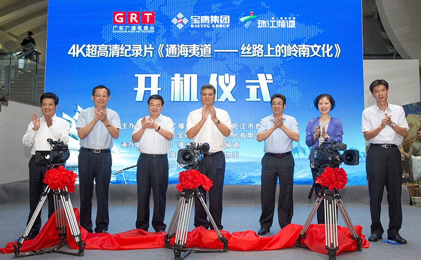 8月29日,由廣東廣播電視臺、深圳寶鷹集團聯(lián)合制作的廣東首部4K超高清紀(jì)錄片《通海夷道——絲路上的嶺南文化》開機儀式在陽江市廣東海上絲綢之路博物館(南海一號博物館)舉行。該片已入選中宣部“紀(jì)錄?中國”國際傳播工程項目,亦是廣東省推動4K超高清電視應(yīng)用與產(chǎn)業(yè)發(fā)展、4K傳播內(nèi)容原創(chuàng)的重要舉措。省委副書記、省長馬興瑞出席開機儀式。