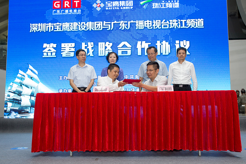 開機儀式上,廣東廣播電視臺副臺長楊卓興、寶鷹集團副總裁古樸還代表雙方現(xiàn)場簽訂了戰(zhàn)略合作協(xié)議。此次合約的簽訂意味著雙方將在未來的合作中充分發(fā)揮自身優(yōu)勢與影響力,本著以優(yōu)勢互補、互惠互利、合作共贏原則,進一步拓寬雙方資源發(fā)展渠道,實現(xiàn)全方位、多元化、寬領(lǐng)域的媒體戰(zhàn)略合作。