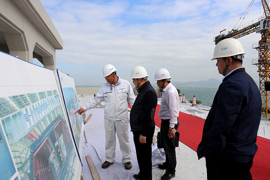 12月1日,為確保公司承建的港珠澳大橋東人工島主體建筑裝飾裝修工程在2017年12月25日前竣工,以保障港珠澳大橋2017年12月底具備通車條件,寶鷹集團(tuán)副總裁古樸、于泳波趕赴一線考察港珠澳大橋東人工島工程項(xiàng)目進(jìn)度,并在項(xiàng)目部召開沖刺誓師大會(huì)。