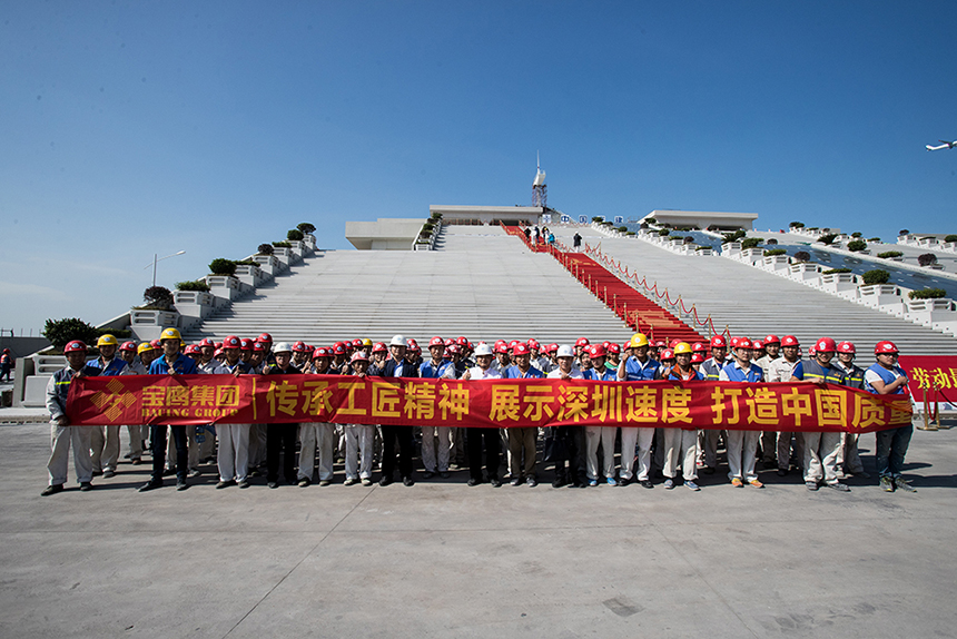 在隨后召開的誓師大會(huì)上,寶鷹集團(tuán)總裁古樸為項(xiàng)目部人員加油打氣,鼓勵(lì)項(xiàng)目部人員協(xié)同作戰(zhàn),攻堅(jiān)克難。他表示,寶鷹集團(tuán)自承接項(xiàng)目工程以來,面臨時(shí)間緊,任務(wù)重等多重問題。百人攻堅(jiān)克難,背水一戰(zhàn)。在環(huán)境極端惡劣的情況下,寶鷹人不畏艱難,積極應(yīng)對(duì)各種挑戰(zhàn),做好了各項(xiàng)防控防風(fēng)險(xiǎn)措施。一切致力于做到精益求精,嚴(yán)格管控,杜絕絲毫誤差。寶鷹人要向世界展示企業(yè)實(shí)力和品質(zhì)高度,全力以赴投入此項(xiàng)目,發(fā)揮以“智、敏、勇”為核心的企業(yè)文化精神,傳承工匠精神,展示深圳速度,打造中國(guó)質(zhì)量!