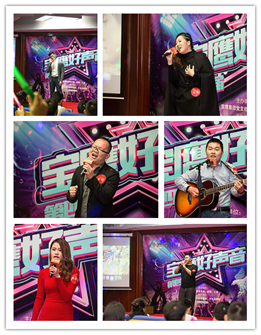 12月19日,第四屆“寶鷹好聲音”初賽拉開帷幕,35名選手、5名專業(yè)評委精彩亮相,參賽選手通過吉他彈唱,雙人合唱,個(gè)性獨(dú)唱等多樣化方式,發(fā)揮所長,各顯神通。選手“粉絲團(tuán)”傾情加油助威,可容納240人的賽場座無虛席,場外圍觀更是熱烈。經(jīng)過激烈角逐,由專業(yè)評委老師綜合打分后,12名選手進(jìn)入決賽。