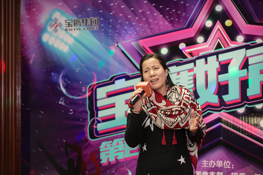 雙人PK賽環(huán)節(jié),工程管理七部選手陳輝武帶來的溫馨賽前視頻引發(fā)全場歡呼,把工作、愛好、家庭完美融合,展示了寶鷹集團(tuán)員工積極向上的生活態(tài)度?!皩汑椇寐曇簟蓖鶎眠x手吳錦朋、羅曉芬也傾情助場,分別帶來帶來歌曲《 流浪記 》、《梅花淚》,掀起現(xiàn)場熱潮。
