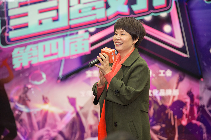 ▲第三屆“寶鷹好聲音”選手羅曉芬獻(xiàn)唱《梅花淚》