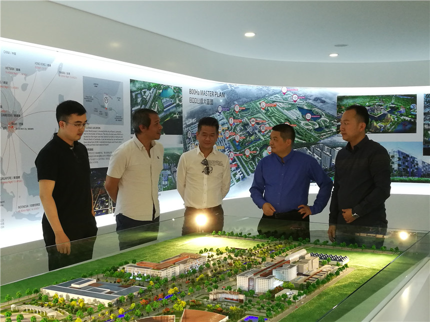 ▲寶鷹集團(tuán)副總裁古樸(右二)與柬埔寨帝盛世界集團(tuán)首席執(zhí)行官呂汶錝(右一)就帝盛世界項(xiàng)目進(jìn)行業(yè)務(wù)洽談