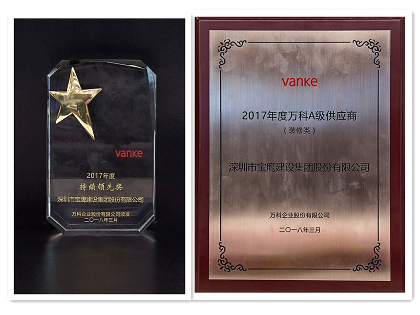 近日,萬科2017年度合格供應商評估結果出爐。此次參評合格供應商共1250家,其中“A級供應商”159家。寶鷹集團憑借過硬的產(chǎn)品質(zhì)量和始終如一的優(yōu)質(zhì)服務體系榮登“2017年度萬科A級供應商”(裝修類)榜單并獲得“2017年度持續(xù)領先獎”。