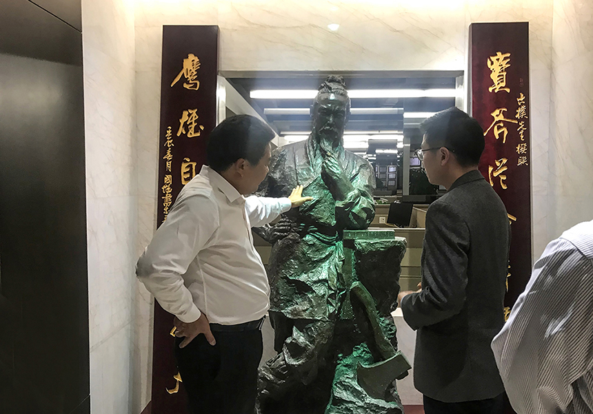 劉自鴻博士一行在古少波董事長的陪同下參觀了寶鷹集團(tuán)辦公環(huán)境及寶鷹美術(shù)館,他高度評(píng)價(jià)了寶鷹集團(tuán)的產(chǎn)業(yè)布局及戰(zhàn)略眼光,通過對(duì)寶鷹集團(tuán)的了解,對(duì)其在建筑裝飾行業(yè)中展現(xiàn)出的工匠精神與濃厚企業(yè)文化點(diǎn)贊。