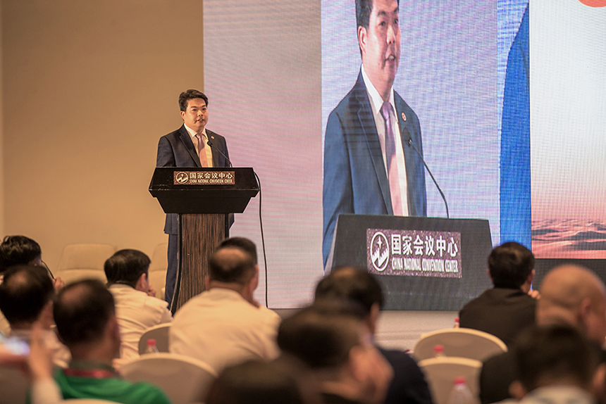 中國建筑裝飾協(xié)會執(zhí)行會長兼秘書長劉曉一、中國對外承包工程商會副會長于曉虹以及中國建筑裝飾行業(yè)企業(yè)代表、新聞媒體及各相關(guān)行業(yè)商協(xié)會代表近300人參加會議,寶鷹股份董事長古少波應(yīng)邀出席并做主題演講。