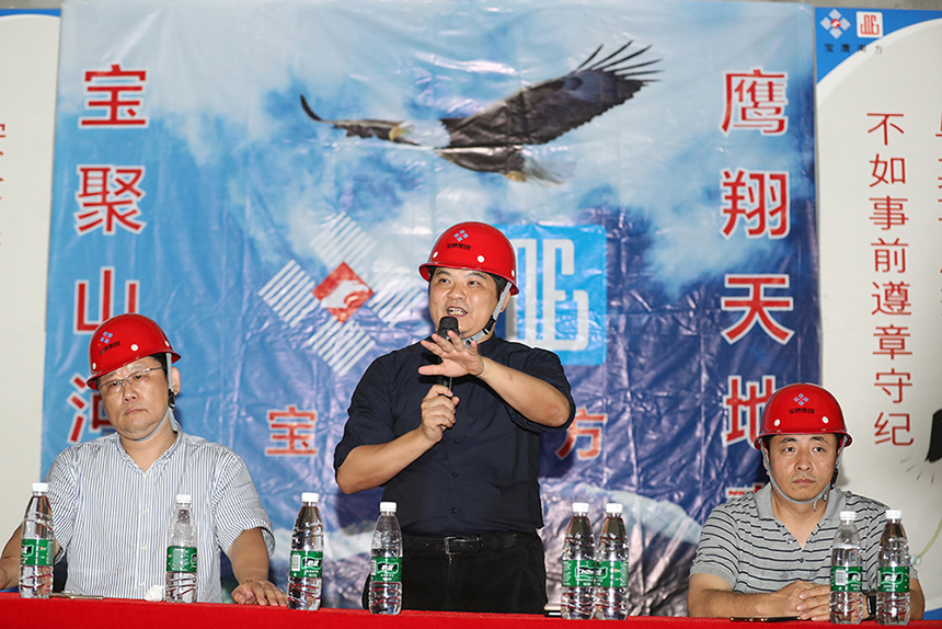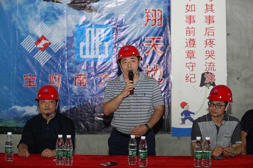 寶鷹集團(tuán)副總裁古樸向全體項(xiàng)目員工發(fā)起號(hào)召,希冀大家團(tuán)結(jié)一心、并肩作戰(zhàn)、攻堅(jiān)克難,努力把星藝文創(chuàng)天地項(xiàng)目打造成集團(tuán)2018年踐行深圳速度和質(zhì)量的標(biāo)志項(xiàng)目、觀摩項(xiàng)目。全面發(fā)揮以“智、敏、勇”為核心的企業(yè)文化精神,傳承寶鷹工匠精神。嚴(yán)格落實(shí)安全生產(chǎn)責(zé)任制,人人都需要擔(dān)負(fù)起重要的監(jiān)督、示范責(zé)任。項(xiàng)目管理人員要對(duì)安全防范、隱患整改、督導(dǎo)檢查部署到位,以過嚴(yán)過硬的舉措確保萬無一失。三百六十行,行行出狀元,每個(gè)工種都是整體不可分割一部分,希望全體同事團(tuán)結(jié)一心,協(xié)同作戰(zhàn),以決戰(zhàn)決勝的斗志全力打好百日攻堅(jiān)戰(zhàn)!