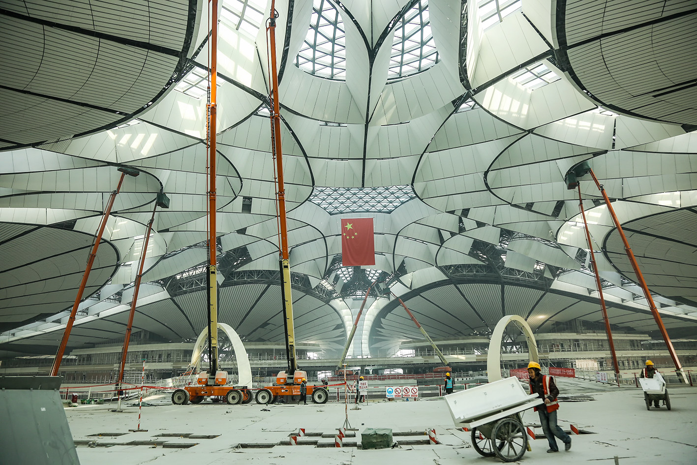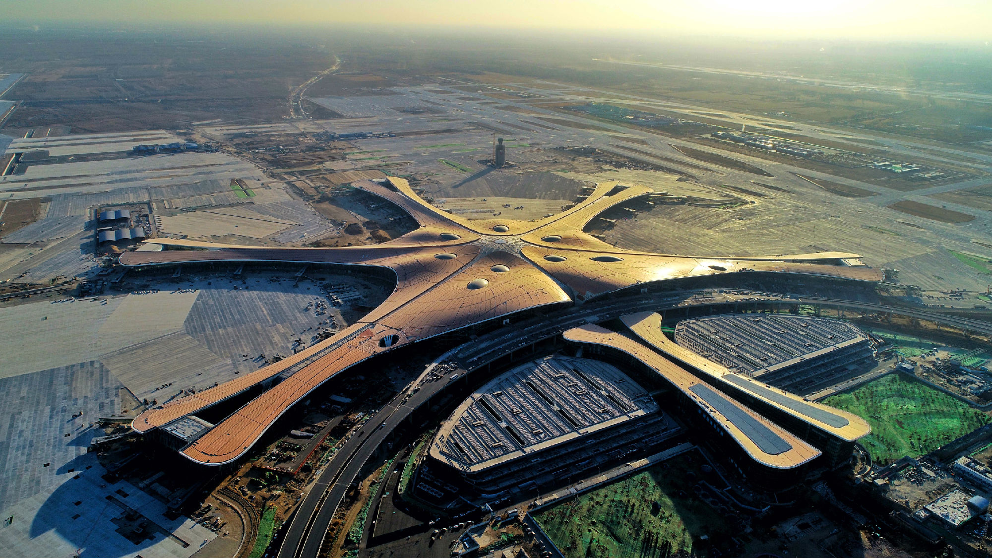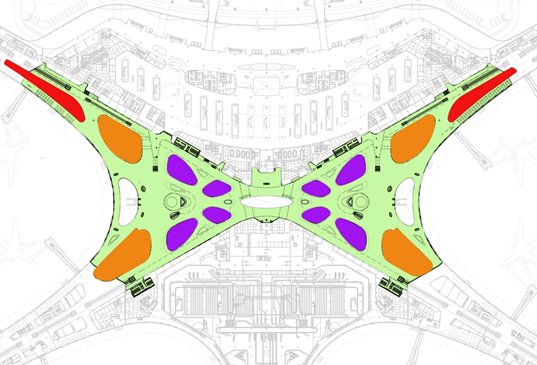 北京大興國際機場被稱為世界最大機場,是國家重點工程項目。總占地面積4.1萬畝,航站樓面積達18萬平方米,總投資約800億元,是中國規(guī)模最大空地一體化交通樞紐,集高鐵、城際、地鐵于一體,服務(wù)北京、天津、廊坊、保定、衡水與雄安新區(qū)。由法國ADP Ingenierie 建筑事務(wù)所聯(lián)手扎哈·哈迪德建筑事務(wù)所共同完成的概念設(shè)計——只有一個航站樓,以單點為中心,延伸出五條指廊,整個航站樓呈輻射狀構(gòu)型。