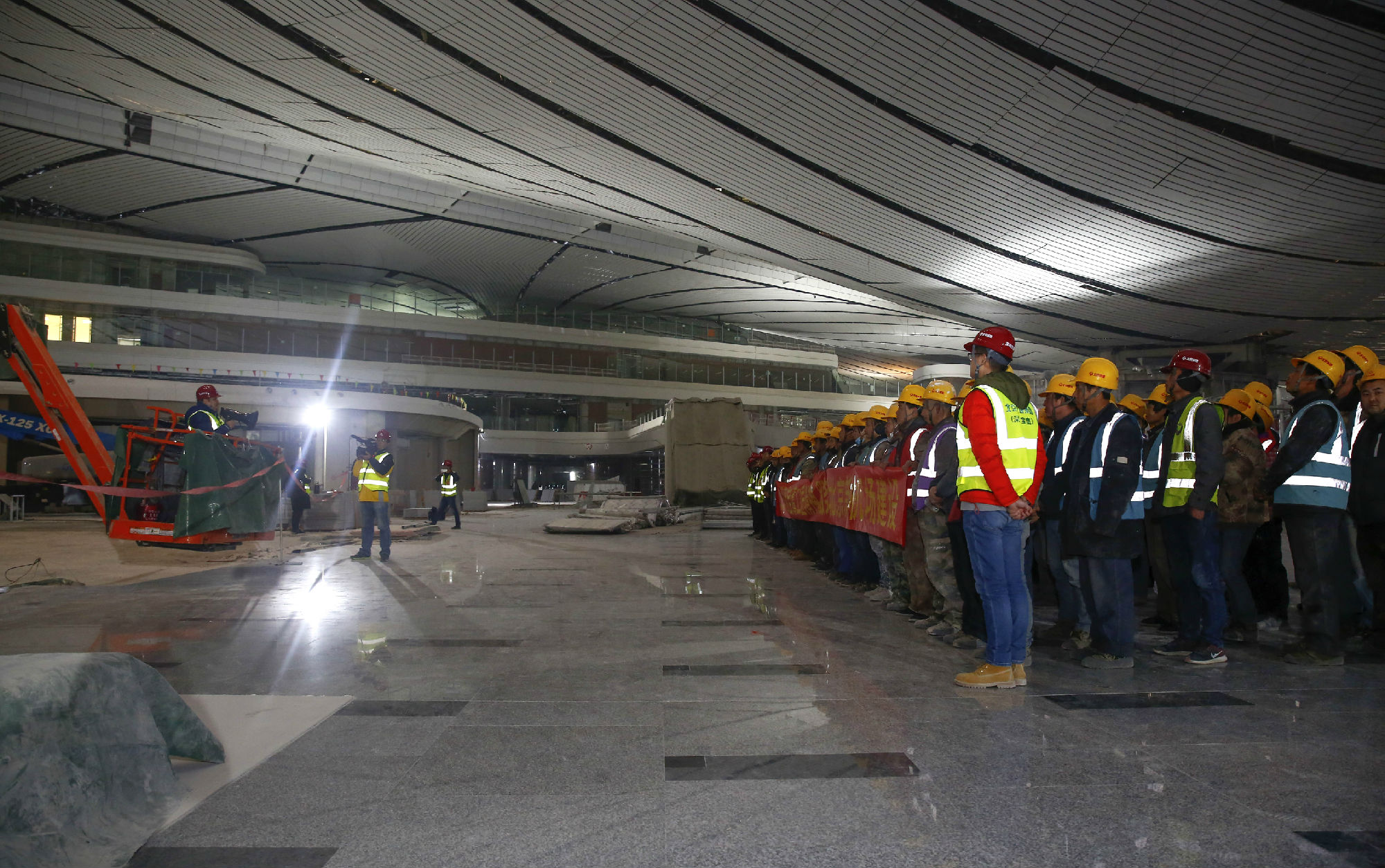 古樸副總裁還現(xiàn)場為項目部評比出的安全文明施工標兵頒發(fā)獎金,勉勵大家牢固樹立安全意識,確保施工安全。尤其是高空作業(yè)環(huán)境,增加了施工難度,40余臺高空作業(yè)車同步施工,應(yīng)把安全工作反復(fù)講,天天講。