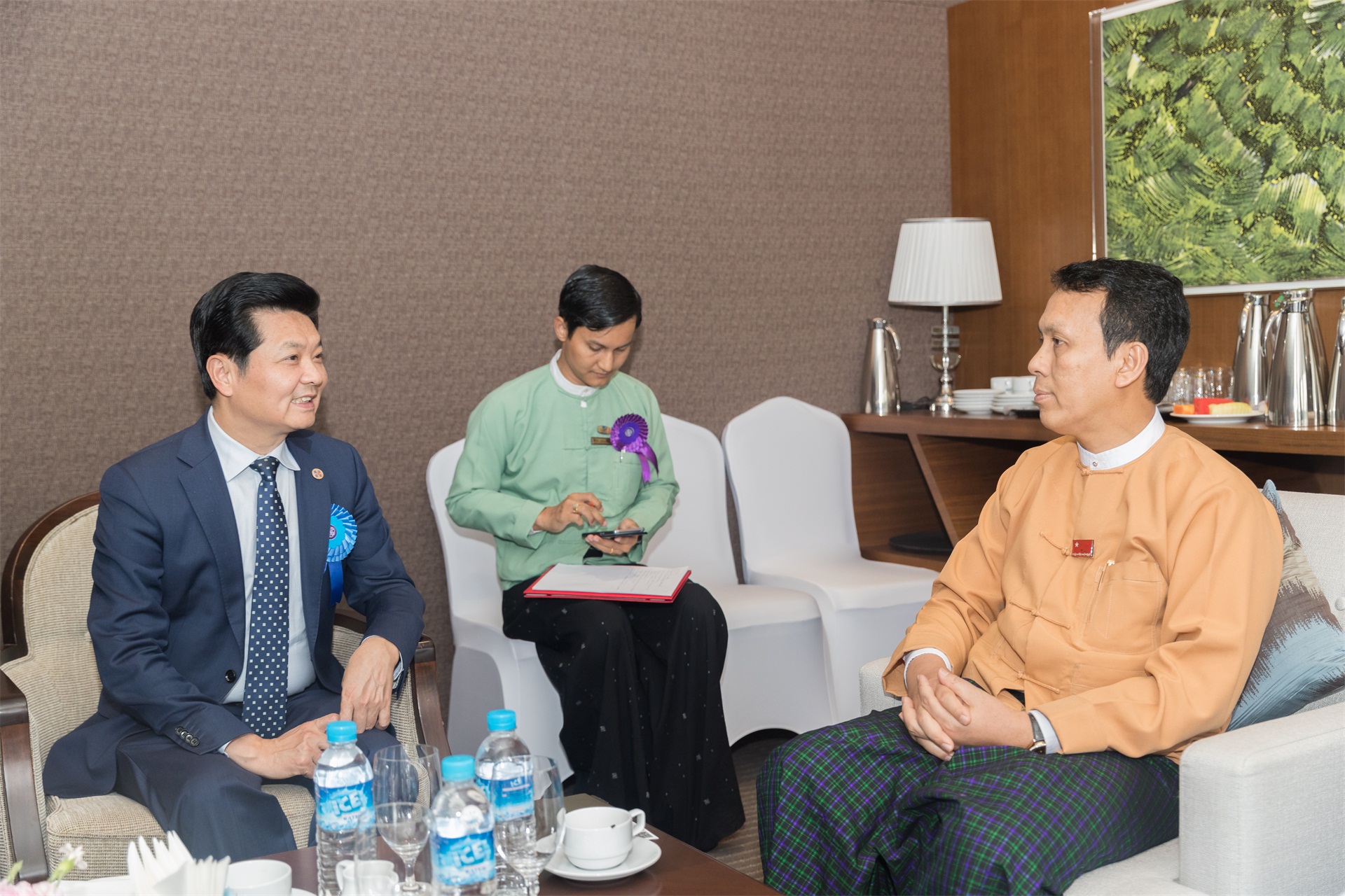 論壇期間,仰光省省長(zhǎng)吳漂敏登(H.E. U Phyo Min Thein)親切會(huì)見了受邀參加論壇的中資企業(yè)代表寶鷹集團(tuán)董事局主席古少明一行。這也是吳漂敏登省長(zhǎng)第二次會(huì)見古少明主席。