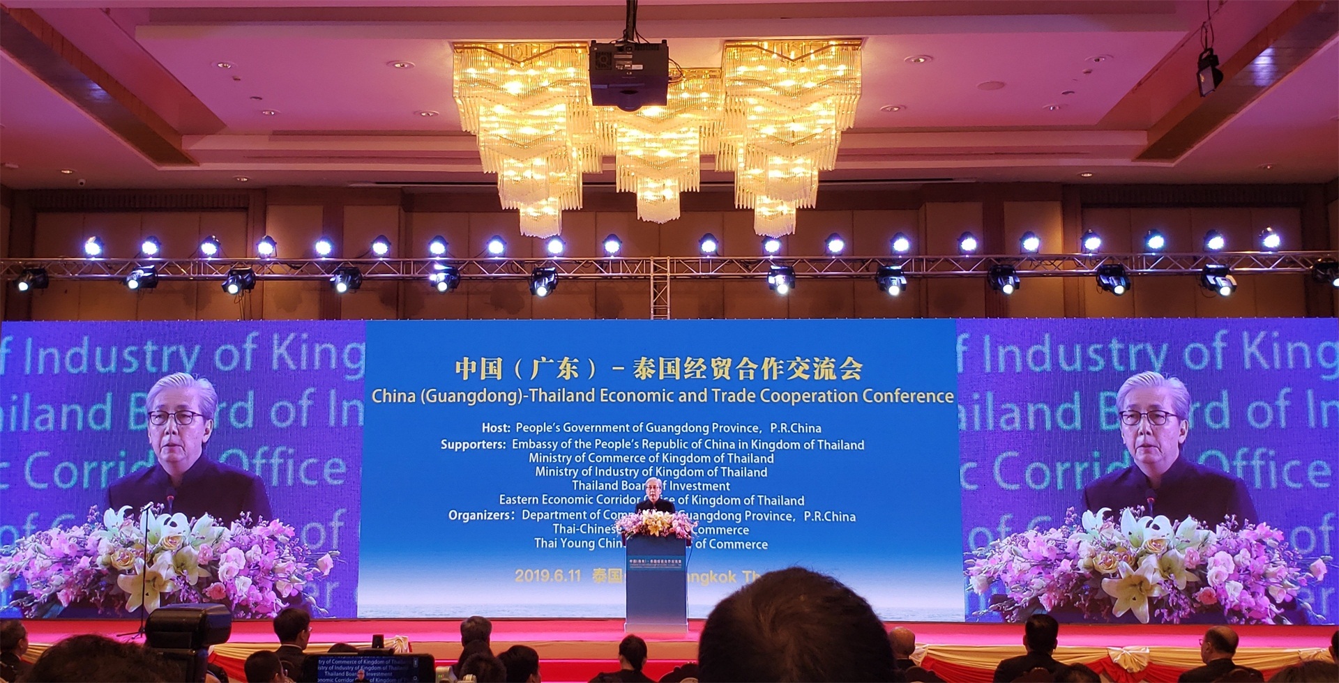 6月11日,中國(guó)(廣東)— 泰國(guó)經(jīng)貿(mào)合作交流會(huì)暨粵港灣大灣區(qū)推介會(huì)在曼谷舉辦。交流會(huì)由廣東省人民政府主辦、泰國(guó)中華總商會(huì)及泰國(guó)華人青年商會(huì)承辦。中泰兩國(guó)政界、商界代表共600多人出席交流會(huì),圍繞“一帶一路”倡議、粵港澳大灣區(qū)建設(shè)與“泰國(guó)4.0”國(guó)家發(fā)展戰(zhàn)略、東部經(jīng)濟(jì)走廊建設(shè)的深度對(duì)接進(jìn)行交流和探討。